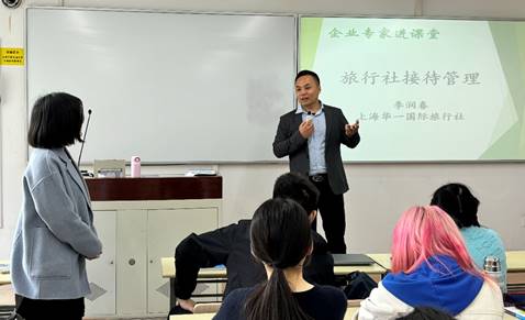 3月25日,beat365亚洲体育官方网站旅游与营销系教师姜宏邀请上海华一国际旅行社越柬部经理李润春老师走进《旅游接待业》课堂,为旅游管理(邮轮经济)专业72名员工带来题为“旅行社接待管理”的精彩一课。李老师深耕旅行社行业近20年,他从行业专家的视角,基于生动的案例和丰富的经验,向员工们讲授了旅行社的业务范围、分类和流程以及旅行社的人员构成等内容,为员工们揭示了旅行社行业的奥秘与魅力。