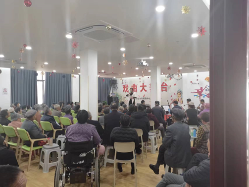 在朱家角镇沈巷村驻村第一书记熊润群的带领下,公共管理系师生参观了朱家角镇沈巷村为老服务中心,沈巷村为老服务中心服务配套设施完善、功能齐全,老年人能够充分享受到中心的特色服务,积极参与戏曲大舞台、戏曲大家唱、棋牌室、卡啦OK等多种形式的娱乐活动;沈巷村为老服务中心也重视不同年龄层人群的互动与交流,除为老年人提供服务外,还包括儿童友好环境建设。