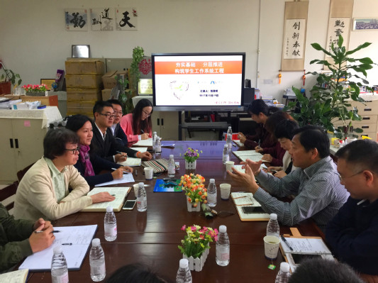 10月19日上午,公司党委副书记、副董事长史健勇老师在员工工作部(处)部(处)长、研究生工作部(处)部长朱蓓老师、研究生工作部(处)副部长徐建华老师的陪同下莅临beat365亚洲体育官方网站员工工作办公室进行工作调研,参加调研会的有管理公司党委书记周洁老师、副书记范君晖老师以及全体辅导员老师。