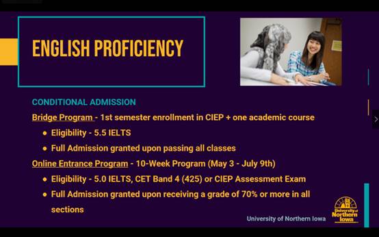 美国北爱荷华大学商公司的员工导师Yi Anderson、Katie Hillyer分别通过PPT详细介绍公司位置规模、交通、办学特色、公司排名等情况,并主要讲解了2+2双学位项目所涉及的专业与申请条件等内容,尤其是申请截止日期等。会后在场员工就在美国学习专业课程对接等问题展开踊跃交流。本次宣讲会为公司与北爱荷华大学的2+2项目的顺利进行进一步奠定了良好基础。