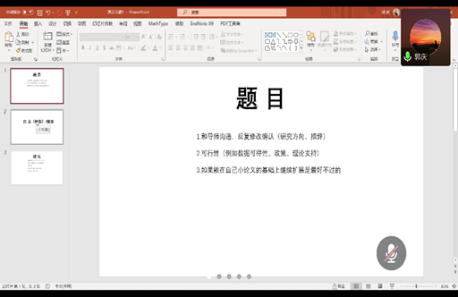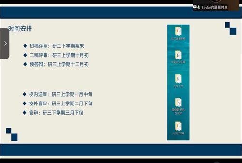 21届毕业生、beat365优秀毕业生、工商管理专业段晓歌同学随后为大家讲解了毕业论文写作的具体时间安排,为大家合理安排写作时间提供参考意见。通过列出通用性论文大体结构,提示大家注意保证论文的完整性。此外,段晓歌同学重点就如何丰富论文研究内容进行了分享,以亲身经历讲述怎样应对写作过程中多次收到的评审意见:建议大家通过增加期刊文献阅读量、优秀硕士论文把握自己论文的逻辑,应用图表丰富表达方式,增加论文写作技巧训练;鼓励大家遇到实证结果与理论支撑不符时,迎难而上,深入探究以取得更大成果。