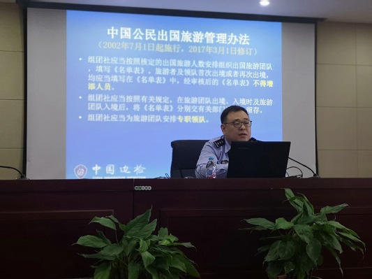 首先,邮轮系列讲座在上海邮轮中心报告厅拉开了帷幕。浦东边检站副处长顾京军受邀在基地报告厅为邮轮专业本科生做题为“出入境相关知识及邮轮口岸工作须知”的讲座,生动形象地为同学们介绍了邮轮相关的法律以及领队所需的素质等。顾京军,现任浦东边检站副处长,博士毕业于北京大学,拥有丰富的边检技能和实战经验,曾多次破解邮轮偷渡和涉毒案件,一直守护邮轮游客安全。期间,顾处长主要介绍了上海边检总站的基本简介以及主要职责,让同学们对边检工作有一个更清晰的认识。随后,他重点推荐了三部法律,希望同学们掌握邮轮相关的法律知识,为以后从事邮轮等相关行业工作做准备。最后,顾处长以其自身破解的几起案件为例,为同学们更真实地讲解“应知法守法、遵守法律,做合格公民”的道理。顾处长一个半小时的精彩分享在同学们的热烈掌声中结束。此次分享不仅丰富了员工的知识,更增长了同学们的见识,为以后进入社会以及从事相关行业打下良好的法律基础。