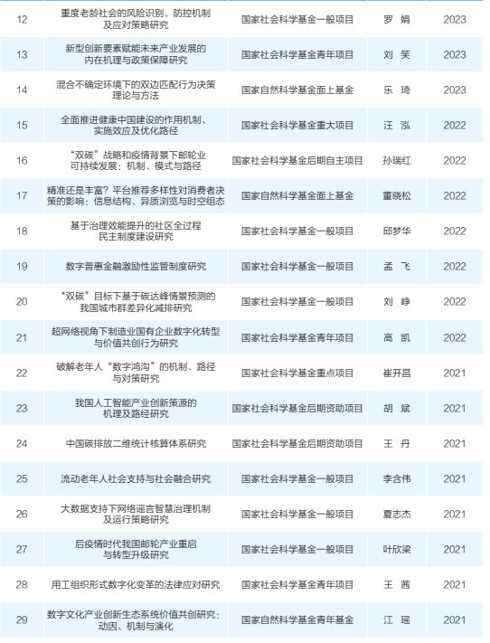 表1beat365亚洲体育官方网站近5年获批国家级课题