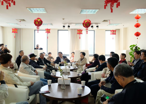 史健勇教授与32821班员工一行首先来到行政楼19楼的观光层,他用生动形象,感情充沛的语言为员工们重点介绍了松江校区的历史沿革、整体规划、文化内涵、二期建设、校庆筹备等工作。员工们聆听仔细,频频点头,啧啧称赞,感叹母校的快速发展,期间还不时拿出手机,记录下眼前的美景。