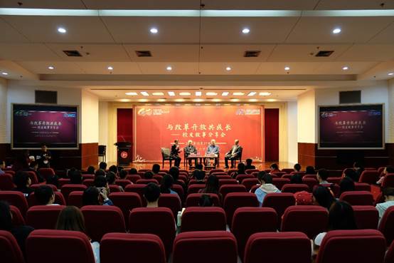 三位员工均为公司首届员工,他们分别讲述了自己成长的故事,并分享了自己的人生收获。戴柳员工提出要保持一种进取的心态,在贡献、奉献的过程中也要学会享受,并且持之以恒;卓福民员工现场展示了自己的画作,并将之作为四十周年校庆生日礼物赠于母校,勉励青年学子学习之余要兼具爱好和情怀,努力就一定有机会;曹德豪员工告诫同学们要抓住当下的学习机会,扎扎实实地掌握管理的基础知识,为未来打下伏笔。