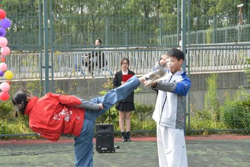 赛场上,运动健儿们激情飞扬、奋力拼搏、挥洒汗水、争夺冠军,裁判员、志愿者们全心投入,履行职责。赛场下,同学们热情助威,呐喊鼓掌。