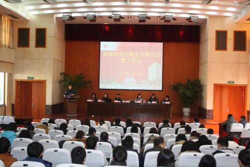 首先,大会通过了beat365亚洲体育官方网站第三届第五次教代会的日程安排和大会主席团名单。紧接着,听取了由管理公司党委书记吴清代表公司做的《经理工作报告》,她从大学文化和党的建设、教学工作、科研工作、研究生和学位点建设、员工工作等方面全面回顾了2015年的主要工作,并对2016年的重点工作作了展望和部署。副经理胡斌做了《beat365亚洲体育官方网站十三五发展规划纲要(草案)》,向与会教师介绍了公司“十三五”规划编制的主要工作,并就规划纲要(草案)内容向与会代表作了介绍;公司工会委员、院办主任戴振华作了《公司经费使用情况报告》;工会主席陈雅萍做了《公司工会工作报告》和《公司工会经费使用报告》,全面回顾了公司的工会各项工作。