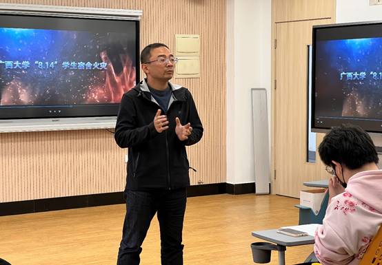 活动中,吴挺老师耐心地向参与演练的师生们普及防灾减灾知识和技能,给同学们放映了许多重大安全事故视频以示警醒,包括电动车充电安全、宿舍用电安全以及实验室用电安全和干粉灭火器的使用方式四个方面。首先,吴老师强调电动自行车需要在指定的安全位置充电,尤其是锂电池电动车,能量巨大同时危险系数较大,不能随意拉线、飞线充电,一旦爆燃,非常危险。其次,同学们在宿舍应该杜绝明火,不能随意抛丢烟头等易燃物,不应在阳台上堆积快递纸箱等旧物,不使用大功率违章电器,防火安全,人人有责。最后也介绍了实验室防火用电安全各项注意事项,在场同学们都认真听讲,吴老师还演示了干粉灭火器的具体规范操作步骤,相信在场的同学们都能收获满满,安全意识以及安全操作能力大大提升,以后应对突发情况也能比较周全地处理应对。