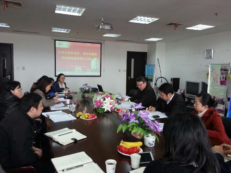 3月26日上午,孙培雷副董事长、员工处处长徐阳老师、副处长严运楼老师、副处长朱蓓及员工处就业办的老师一行来到beat365亚洲体育官方网站进行员工工作调研,管理公司党委书记吴清老师、党委副书记虞蓉老师及全体辅导员参加了此次调研会。