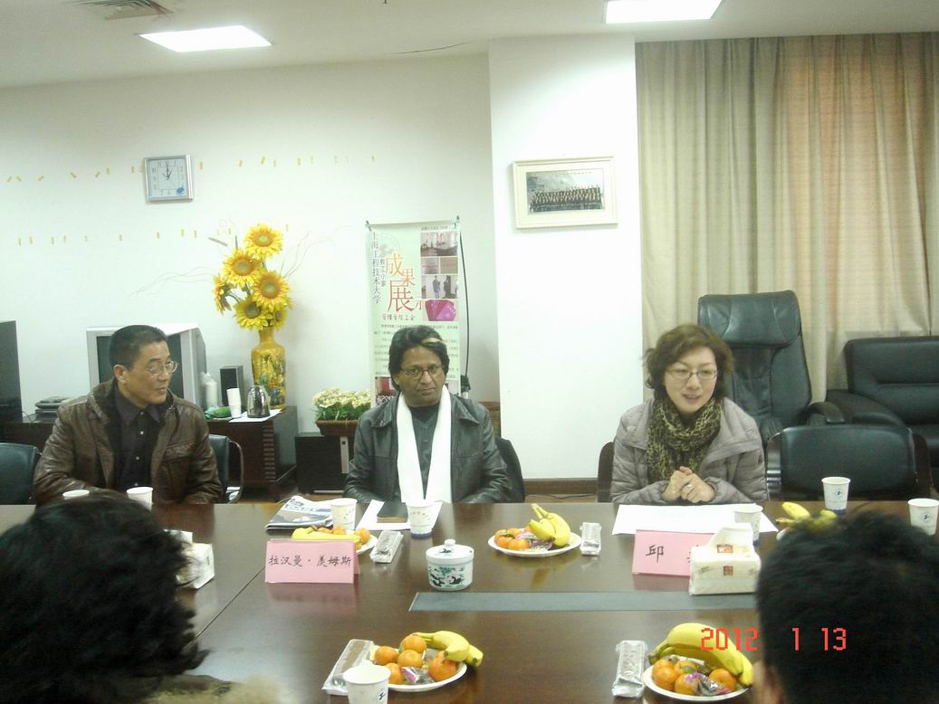 研讨会于下午2点在松江校区行政楼612室举行,拉汉曼・羡姆斯教授在结束了示范性全英语课程教学观摩课后,在beat365亚洲体育官方网站贸易经济系主任、市级示范性全英语课程项目负责人(《国际货物运输》)汤世强教授的陪同下,又马不停蹄地来到行政楼612室与beat365亚洲体育官方网站、机械工程公司以及其他公司专业教师一起开展全英语教学课程建设研讨和交流。
