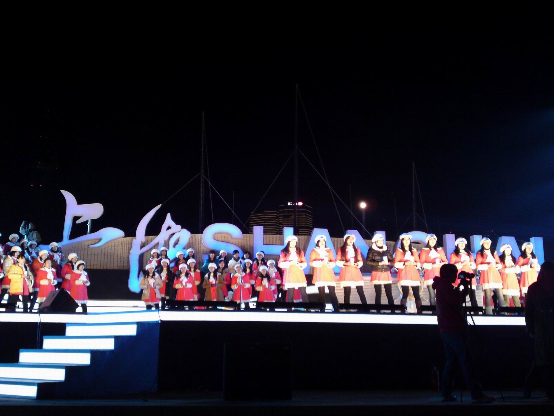 在本次彩排中,虽然前期准备了很久,付出了很多,但是在同学们的调整和不懈的努力下,同学们克服了种种困难,将全部的激情投入到合唱排练当中,成功地完成了全场的彩排演出。而在排练现场担任后勤的老师与志愿者们,也默默地为同学保障了后勤服务。深夜凌晨两点,彩排结束了,虞蓉老师亲切鼓励并慰问了同学们,说明正式演出的要求后,同学们有序地离开了外滩。