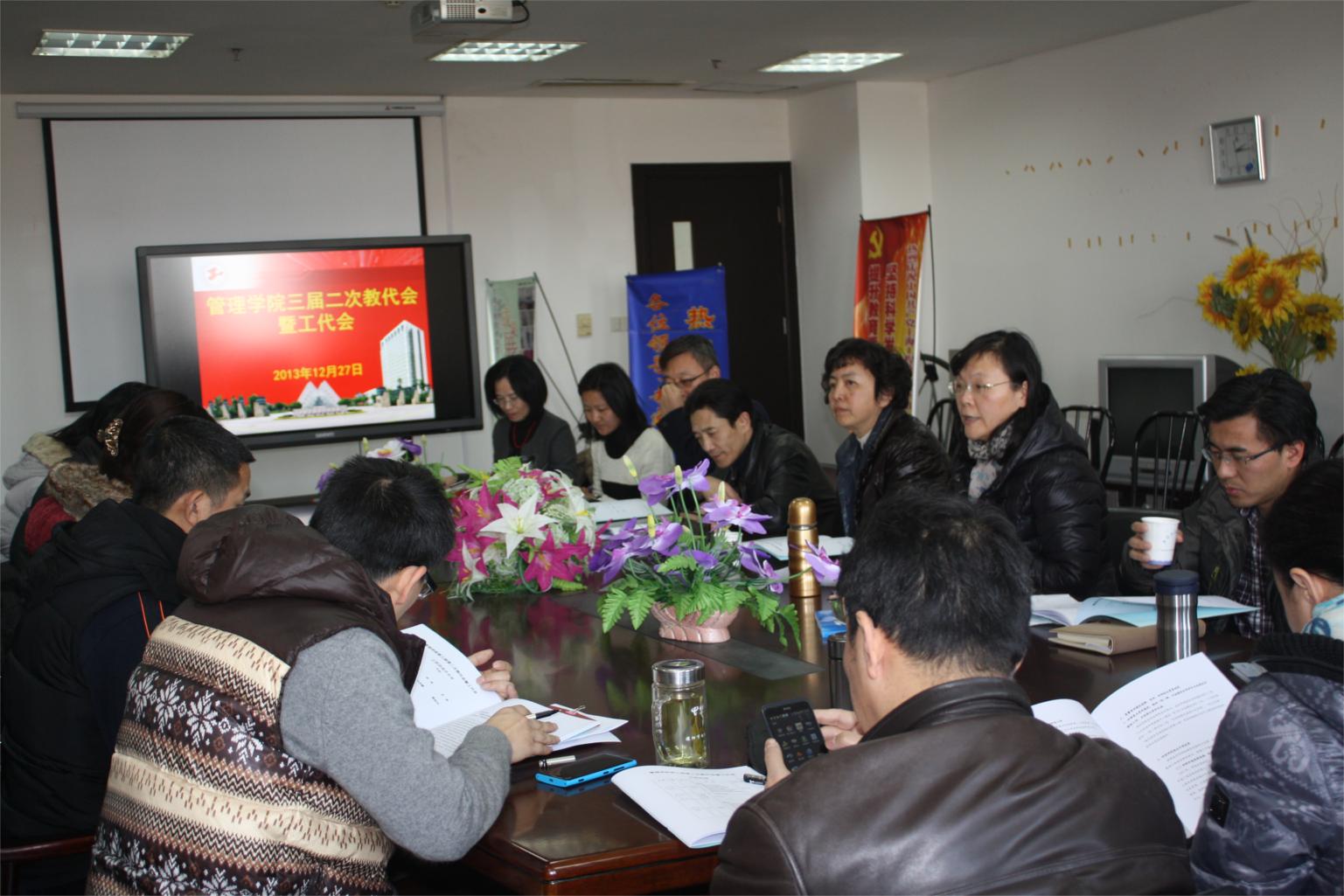 伴着走向2014新年的脚步,beat365亚洲体育官方网站于12月27日下午,在行政楼612室举行了beat365亚洲体育官方网站三届二次教代会暨工代会。校工会常务主席沈海庆、管理公司党委书记吴清、经理吴忠以及公司教职工代表参加了此次会议。会议由beat365亚洲体育官方网站吴清书记主持。