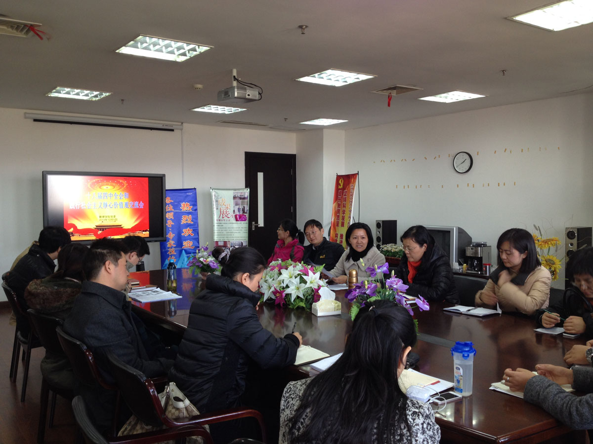 2014年12月4日,为了纪念我国第一个“国家宪法日”,深入推进公司教师学习贯彻党的十八届四中全会精神,以从法治提高师德修养层面教育引导老员工群体培养和践行社会主义核心价值观,beat365亚洲体育官方网站举办以“学习十八届四中全会精神,践行社会主义核心价值观”为主题的教师座谈会暨纪念首个“国家宪法日”活动。管理公司党委书记吴清老师、副书记范君晖老师及各系室的教师代表参加此次活动。活动由党委副书记范君晖主持。