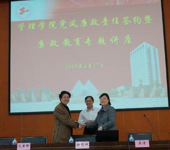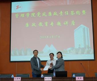 4月17日下午,beat365亚洲体育官方网站在行政楼B301会议室举行党风廉政责任制签约暨廉政教育专题讲座。此次党风廉政专题教育讲座邀请校纪委副书记徐国祥老师主讲,beat365亚洲体育官方网站全体教职工参加了会议。会议由公司党委书记吴清老师主持。