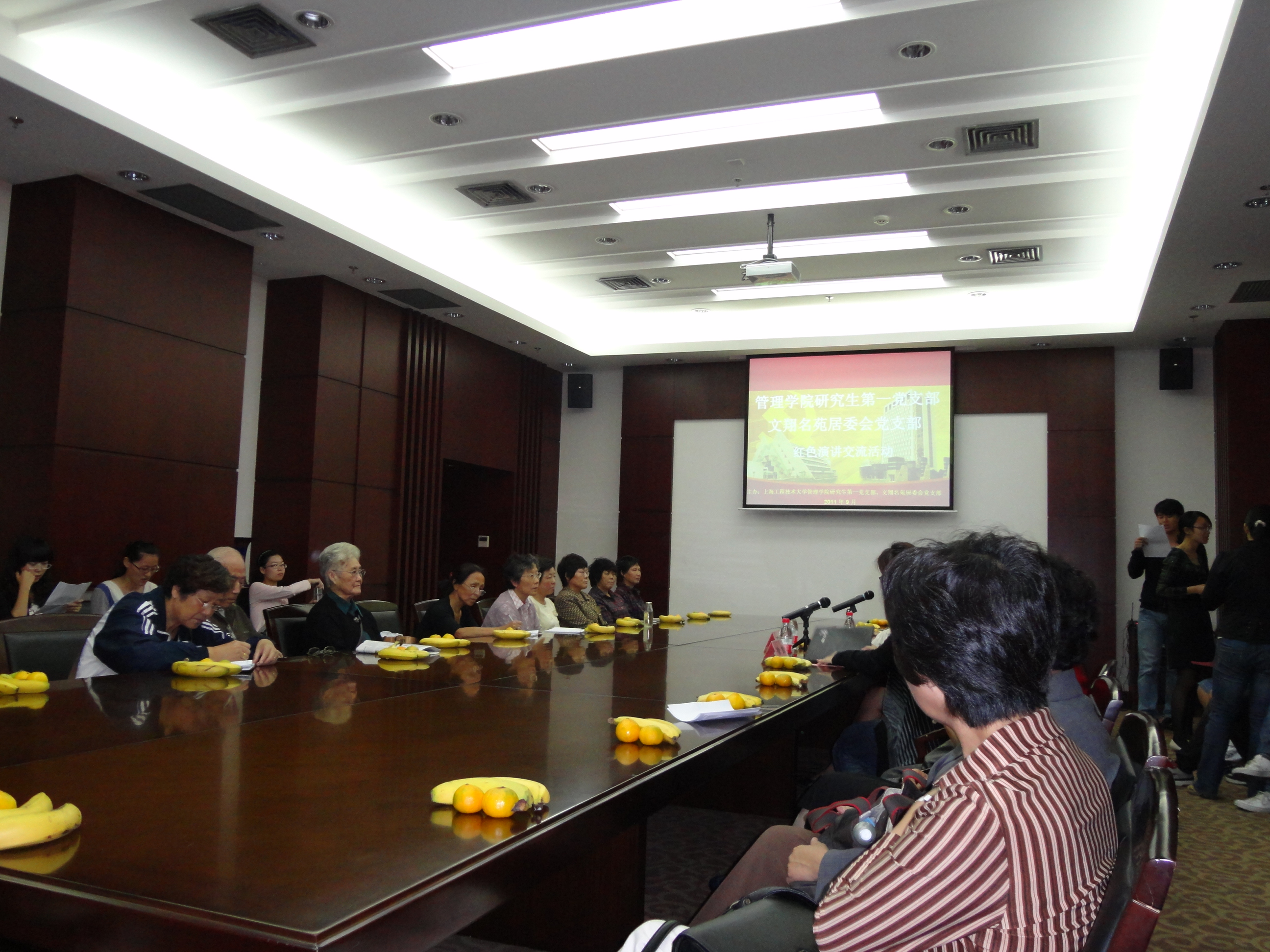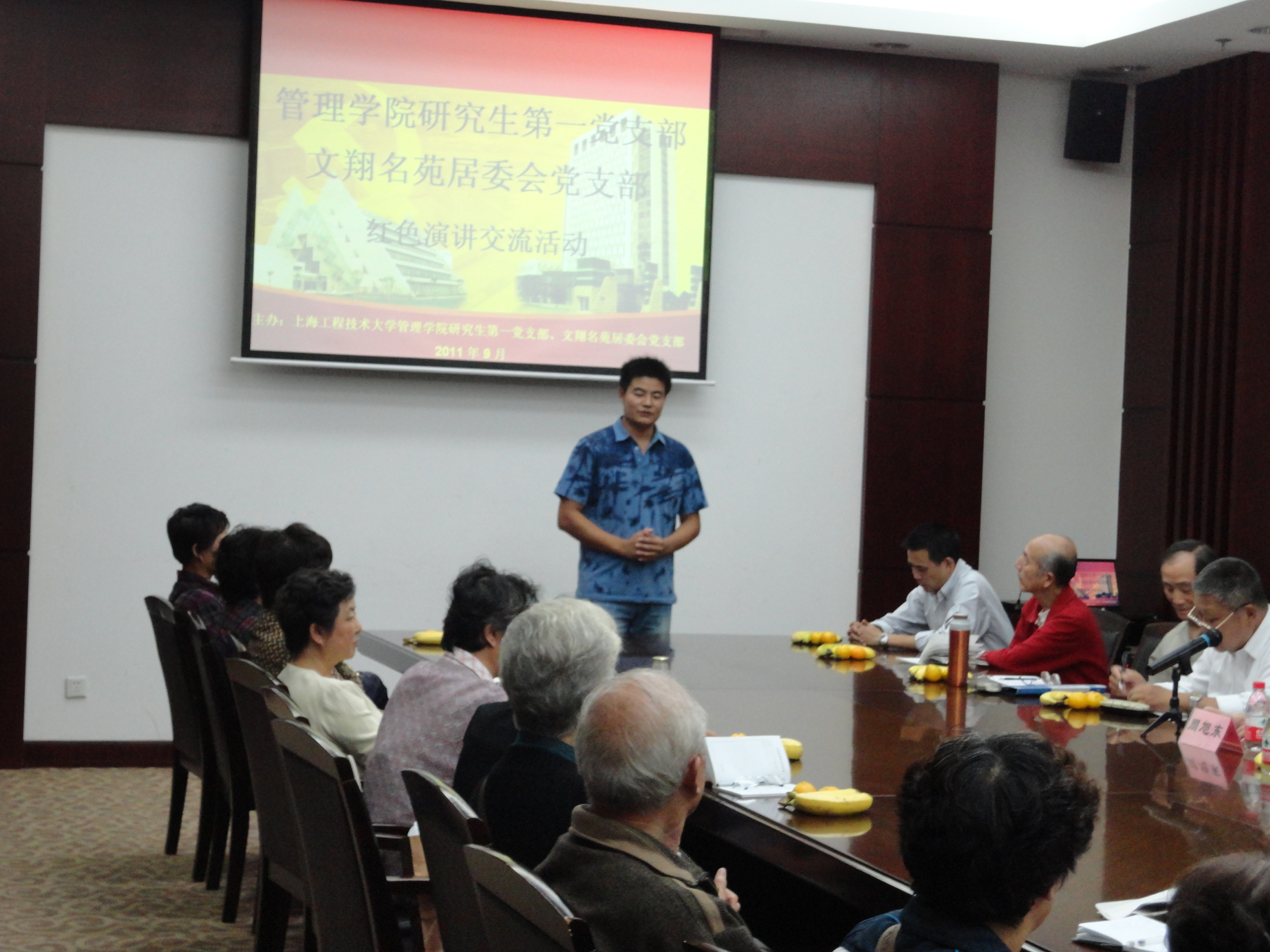 9月23日下午,beat365亚洲体育官方网站研究生第一党支部与文翔名苑居民区党支部在图书馆第五报告厅举行红色演讲交流活动。管理公司党委副书记虞蓉老师、beat365亚洲体育官方网站研究生第一党支部书记徐佳老师、文翔名苑居委会党支部书记周旭东老师出席了此次会议。
