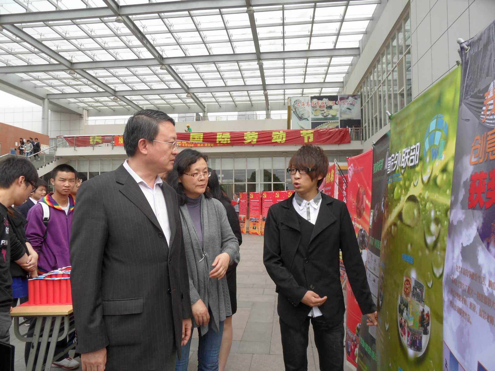 活动伊始,各位领导参观了由各部门结合红色巡礼主题与部门内部活动制作的展板。随后,校员工处处长王明复为本次活动致辞。紧接着,领导们与在场同学一同欣赏了慷慨激昂的诗歌朗诵及女子防身术社团带来的精彩节目等。