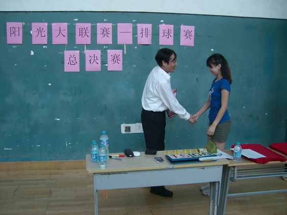 6月15日,2010-2011学年beat365阳光大联赛男女混合排球赛在校体育馆二楼落下帷幕。校员工处处长王明复,体育教学部主任、党支部书记谢敏,管理公司党委副书记虞蓉,材料公司党总支副书记薛玲,电子电气公司辅导员张涛等受邀参加本次2010-2011学年beat365阳光大联赛男女混合排球赛决赛暨闭幕式,并进行致辞和颁奖。本次闭幕式由beat365亚洲体育官方网站分团委书记金佳雯主持。