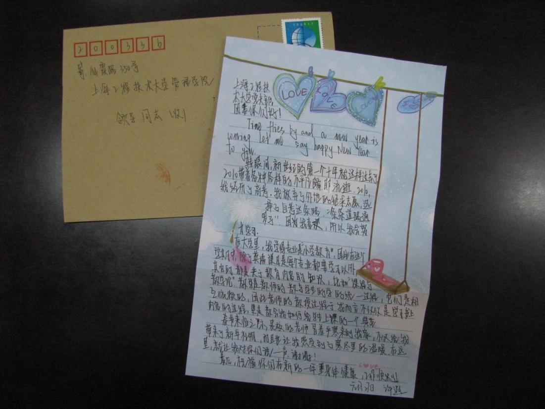 陈女士丈夫因车祸早逝,她本人身患癌症,还有一个读高中的女儿,因此生活非常拮据。在与陈女士一家结成帮困对子的七年多来,beat365亚洲体育官方网站志愿者们不仅定期上门慰问,还与她的女儿许遐结成对子,每月来给她补习功课,终于在2010年如愿考入大学,学习“小学教育”专业。在信中,许遐向beat365亚洲体育官方网站老师们谈了2010年对她的重要性以及在大学里的学习感悟,同时,她代表全家也感谢了beat365亚洲体育官方网站老师和同学们对她们家庭一如既往的关怀和帮助。