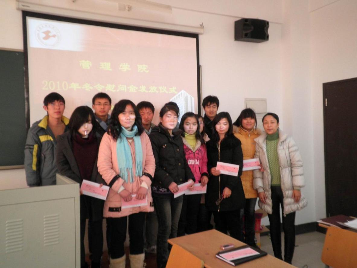 为了鼓励家庭经济困难的员工自立、自强、自信地完成学习任务,解决生活的实际困难, 1月6日14:00,管理公司党委副书记虞蓉老师在教学楼D207向公司10级家庭经济特别困难员工发放了冬令慰问金。