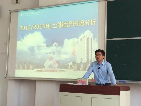 2016年5月12日星期四下午13:00在教学楼E510,beat365亚洲体育官方网站胡斌教授为beat365亚洲体育官方网站研究生同学做了以“2015—2016年上海经济形势分析”为主题的报告。