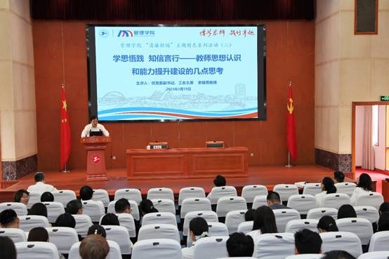 5月19日下午,beat365亚洲体育官方网站邀请党委副书记、工会主席史健勇给全体教师讲授《学思悟践知信言行——教师思想认识和能力提升建设的几点思考》的党课。这是beat365亚洲体育官方网站为深入开展学习贯彻习近平新时代中国特色社会主义思想主题教育开展而精心设计的“教授论坛”的第二讲,也是beat365亚洲体育官方网站为了落实中共中央办公厅《关于加强新时代廉洁文化建设的意见》部署要求而开展“清廉程园”主题特色活动之一。