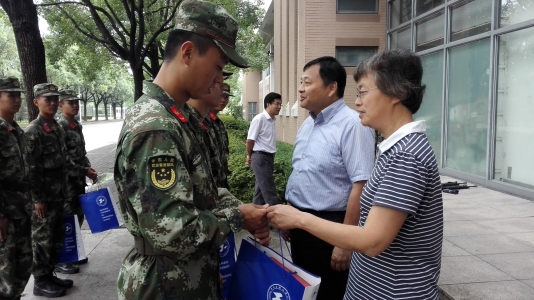 天上月圆,人间团圆。虽然没有与家人团圆,但是在工程大的“军训营中”,不是家人胜似家人。9月14日,正值公司2016级新生军训,管理公司党政班子来到beat365亚洲体育官方网站三营的训练场地,亲切慰问了部队官兵及参训教师,表达节日的祝福与问候。