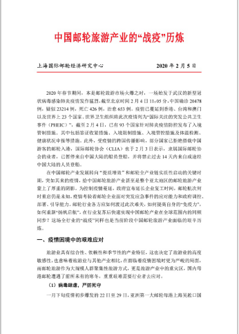 邮轮人支部党员邱羚教授、齐林恺博士,积极参与由上海市文化和旅游局组织的“新冠疫情中的邮轮旅游:战略研判与政策建议”为主题的新型肺炎疫情对邮轮业影响线上座谈会,为政府制定应对政策建言献策,并且起草《中国邮轮旅游产业“战役”历炼》研究专报,为上海市政府相关部门制定应对疫情邮轮相关扶持政策提供坚强的基础。
