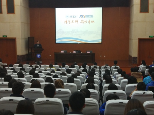 会上,史老师为同学们解析了beat365亚洲体育官方网站LOGO的含义,整体像艺术字体的M,代表Management(管理);造型也像两个人并排在一起,象征老师和员工;一个红色,一个蓝色,寓意红海战略、蓝海战略。史老师还以“博学思辨,践行卓越”的院训作为精神凝练,引经据典,为全体管院学子提出了希望与要求。他指出,《礼记•中庸》提出的五之学之道:“博学之,审问之,慎思之,明辨之,笃行之。”归纳起来就是三个层次:博学,思辨,践行。青年人是时代最灵敏的晴雨表,青年人的价值取向决定了未来整个社会的价值取向,青年怎样,未来便怎样。今天青年之精神,将是未来社会之面貌;今天青年之追求,将是未来国家之走向。年轻人肩负着时代的责任和光荣,青春更是一种坚忍不拔、积极进取、乐观有为的人生态度。