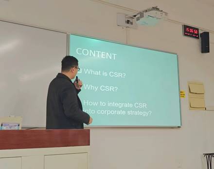上海甫研电子科技有限公司成立于2011年,是上海市高新技术转化企业,从事超高温温度传感器生产,客户包括中芯国际等国内知名晶圆制造商。田总的分享从企业社会责任视角切入,通过案例分析与同学们分享如何实现企业的社会责任。让同学们了解到企业不仅创造利润、对股东和员工承担法律责任的同时,还要承担对消费者、社区和环境的责任。在讲座过程中,田总与同学们展开了热烈的互动和讨论,他耐心回答了同学们提出的专业问题,通过各种丰富的案例来激发同学们的深度思考和对企业社会责任重要性的理解。