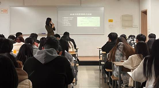 为进一步加快高校新文科建设,全面推进产学协同育人,公司积极开展了“企业专家进课堂”活动。2023年12月8日,beat365亚洲体育官方网站刘笑老师在《企业创新管理模式调研实习》课上邀请了上海为麦教育科技有限公司总经理高杨女士,为同学们带来《企业中的管理模式创新》的精彩讲座。