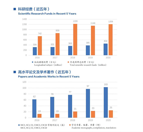 In the past 5 years, total scientific research expenditure has exceeded 50 million Yuan, more than 1200 papers in core journals have been published, including 300 more high-level papers in SCI, SSCI and CSSCI, 95 academic monographs.