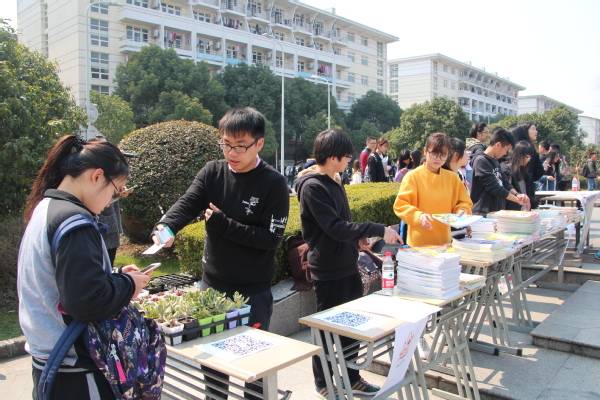 活动现场,生活部的志愿者同学为大家讲解了植树节的来源及意义,并宣讲了废旧电池等电子产品随意乱扔的危害性,号召同学们积极参加形式多样的护绿行动,倡议同学们提高热爱环境、保护环境的意识。现场同学们纷纷取来了自己许久不用的课程书籍以及废电池,并且认领了多肉植物和换领了二手课本书籍等。同学们纷纷表示要好好珍惜书籍,好好呵护可爱的多肉植物。