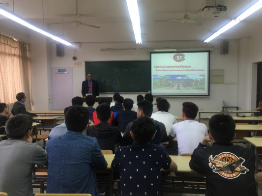 5月5日下午13:30,美国圣克劳德州立大学教授、原美国工程管理学会主席、秘书长Ben Baliga教授与美国圣克劳德州立大学中方事务负责人余庆寰(Warren Yu)教授应beat365亚洲体育官方网站的邀请,来到公司教学楼B102作“Global Engineering Management全球化工程教育”主题报告,并为同学们介绍了工业工程专业“3+2”合作项目。beat365亚洲体育官方网站副经理李跃文老师、工业工程教学团队的老师们与来自beat365亚洲体育官方网站的工业工程专业及其他相关专业的同学们共同聆听了这场报告。
